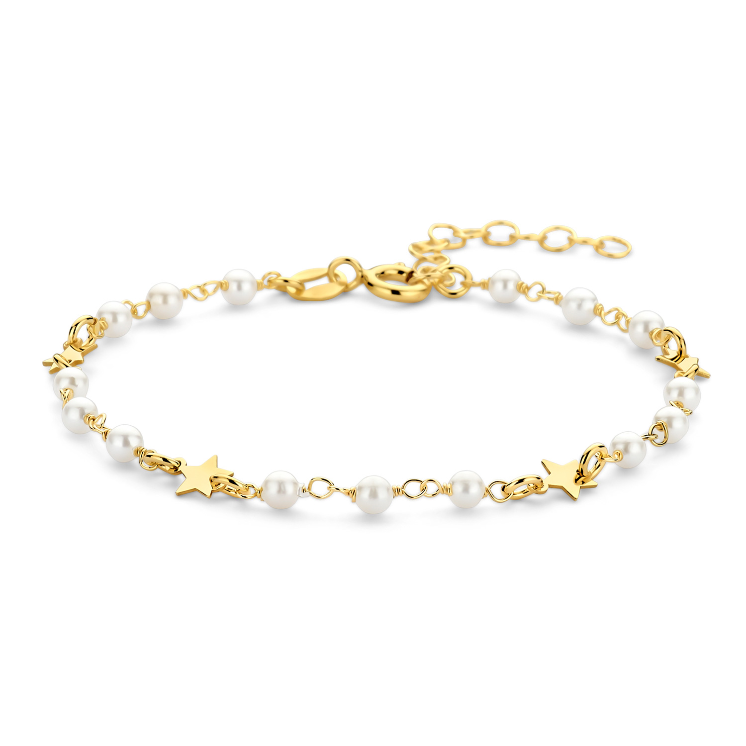 Armband mit 15x Süßwasser-Zuchtperlen und 4 Sterne