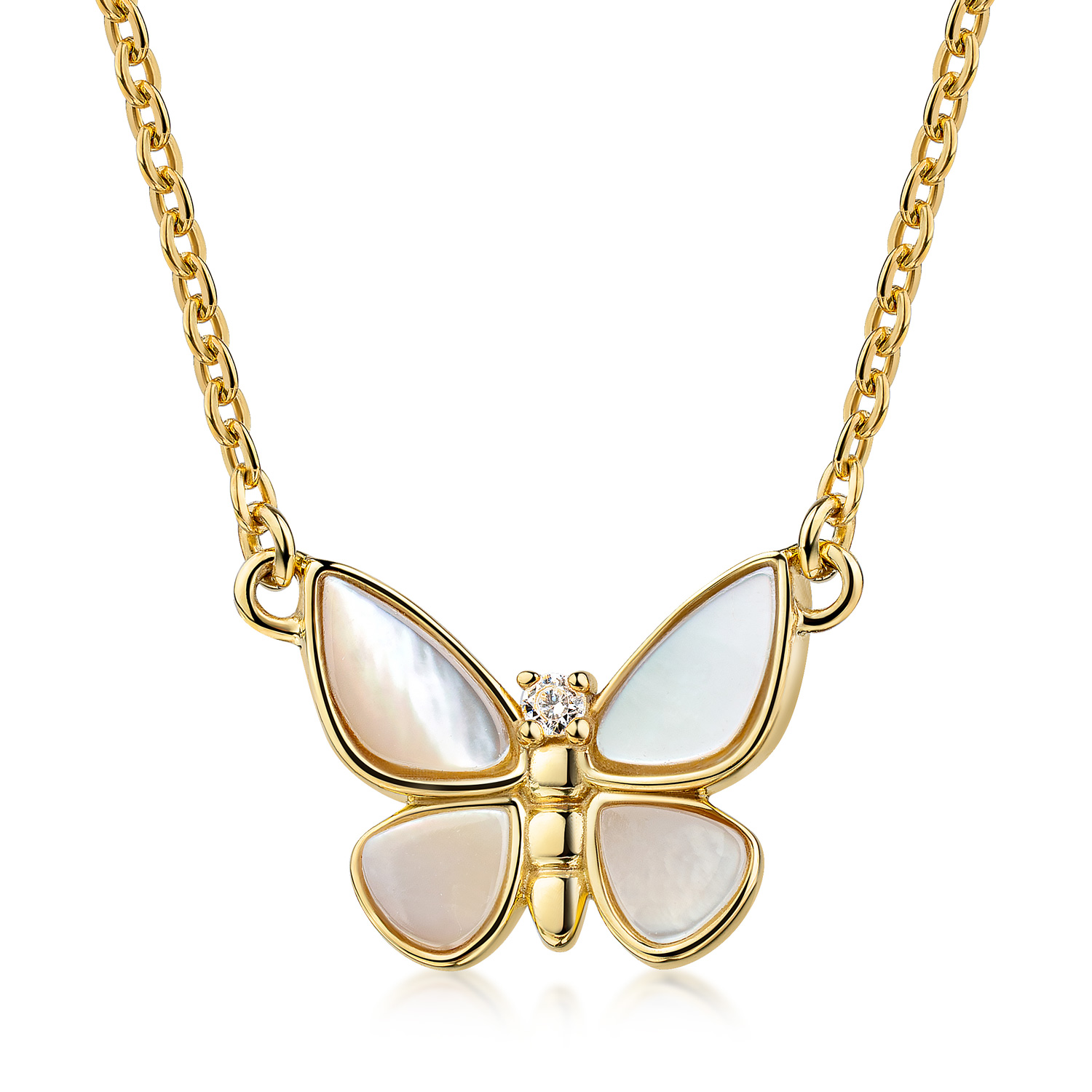 Collier mit Anhänger Schmetterling, Perlmutt (MOP) und Zirkonia