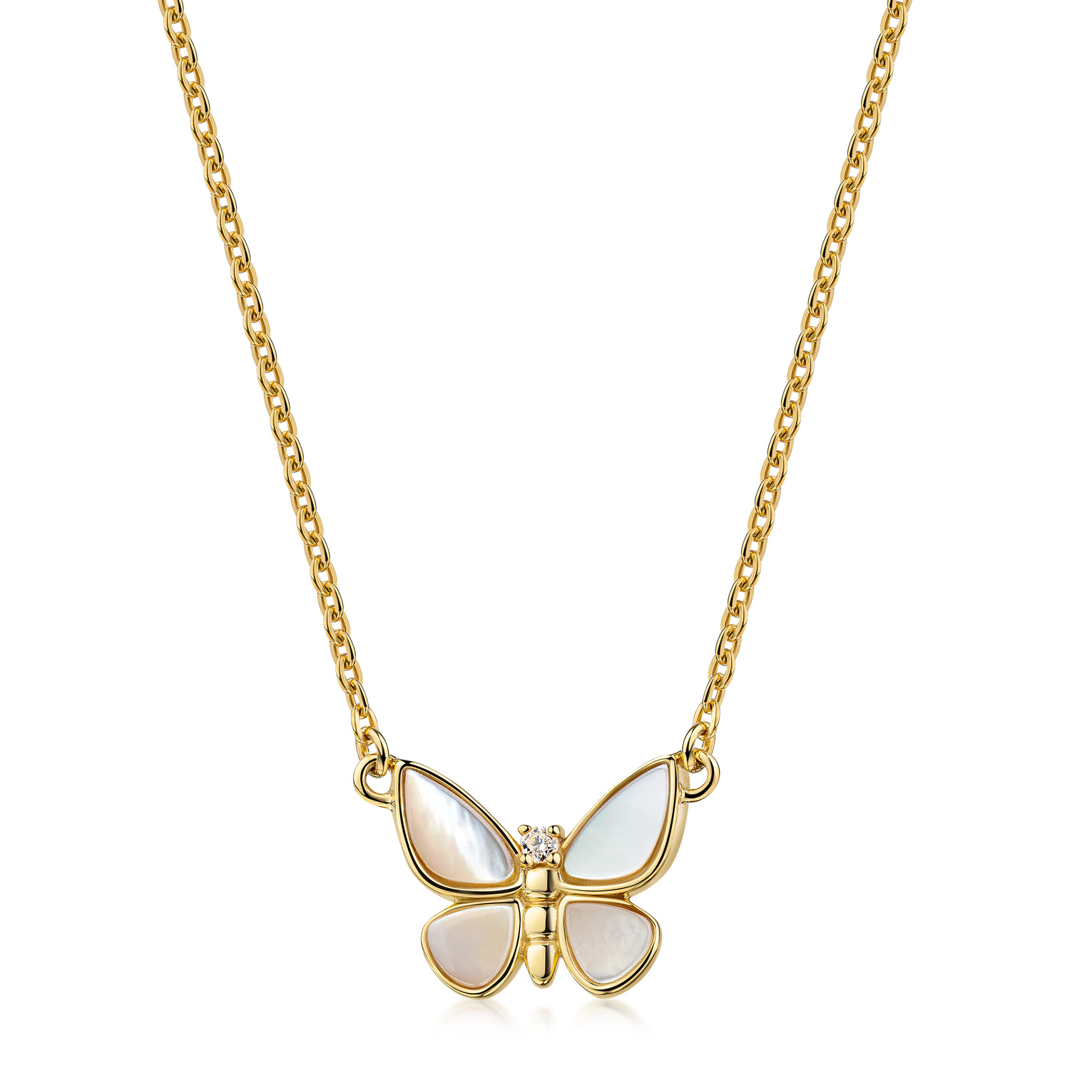 Collier mit Anhänger Schmetterling MOP & Zirkonia Silber 925/000 vergoldet