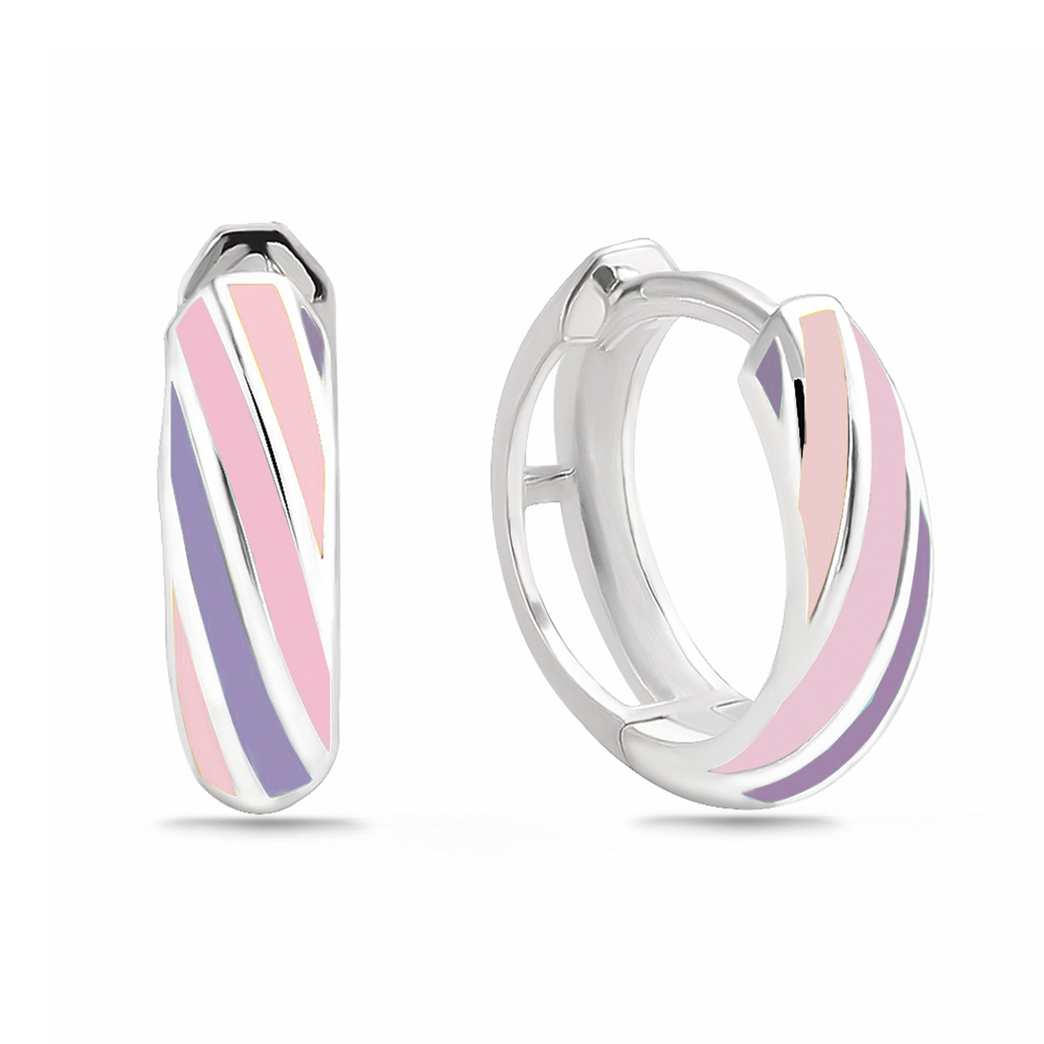 Klappcreolen mit Lack in rosa, lila und pink gestreift