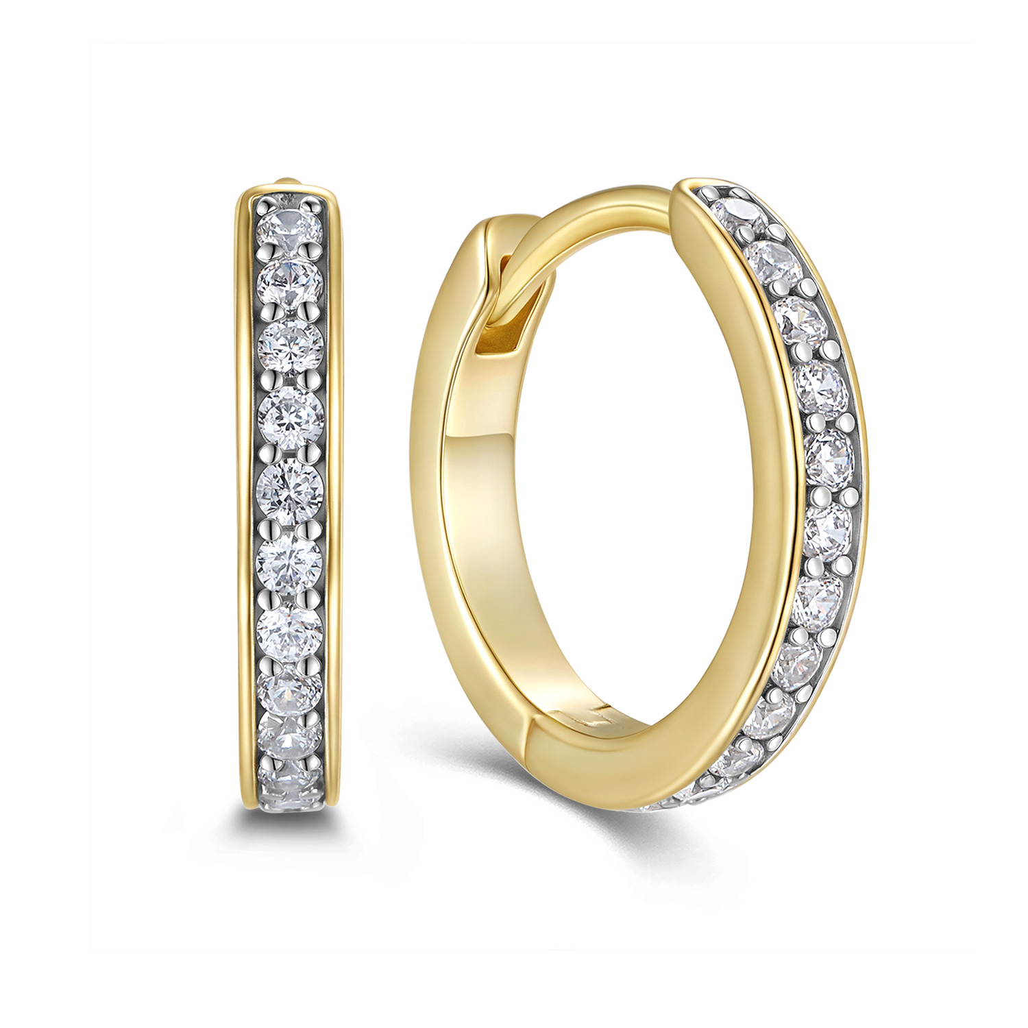 Klappcreolen Ø14mm mit 24 Zirkonia Silber 925/000 vergoldet