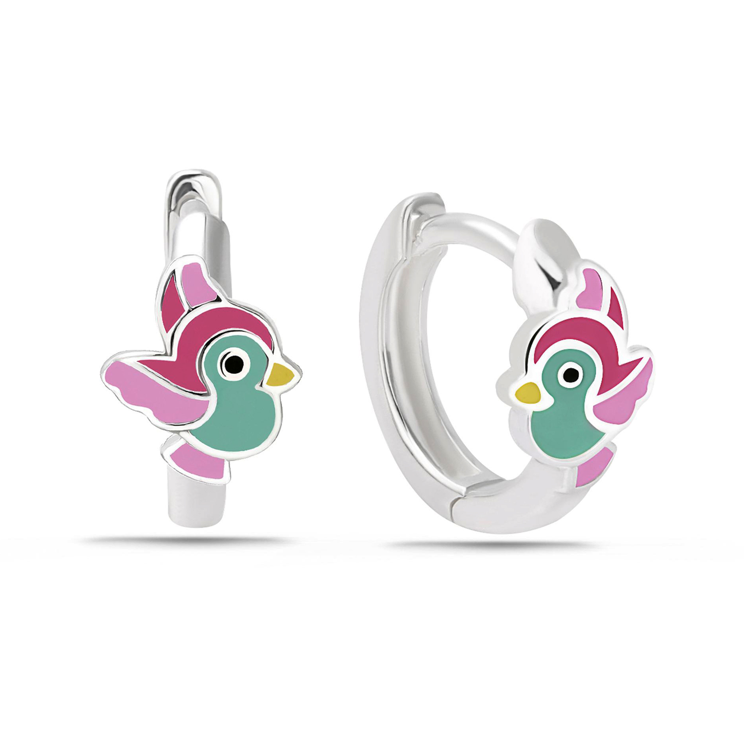 Klappcreolen Vogel Lack in rosa, pink, helltürkis, gelb, schwarz