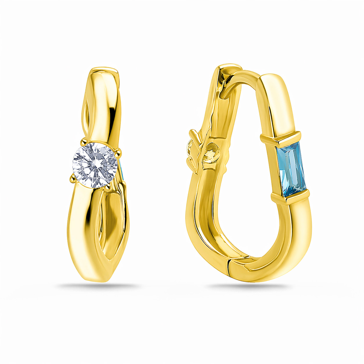 Klappcreolen wendbar mit 2 Zirkonia in weiß und aquamarinfarben
