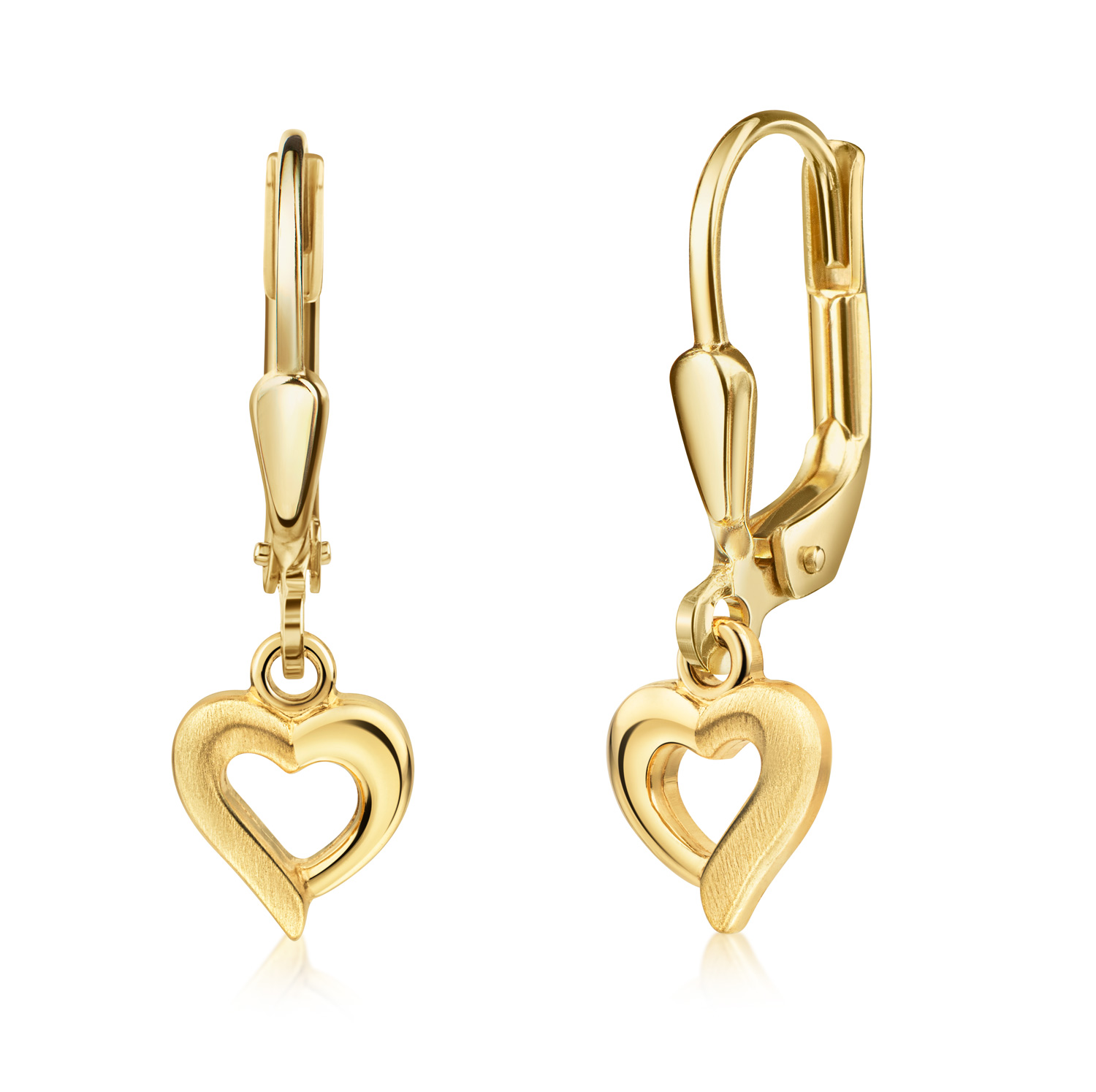 Ohrhänger Herz teilmatt Silber 925/000 vergoldet