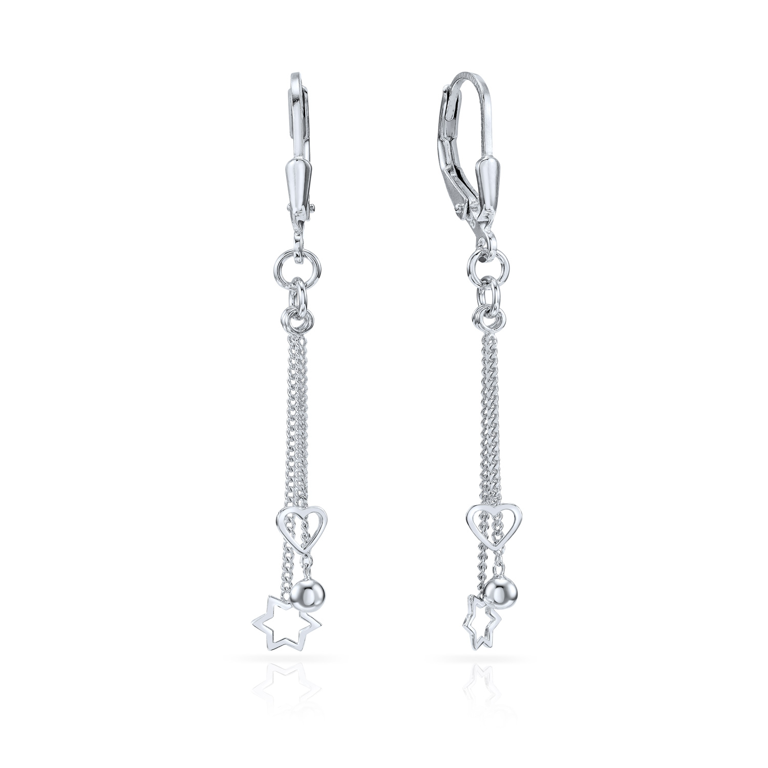 Ohrhänger mit Ketten-Behang Herz/Stern/Kugel Silber 925/000 rhodiniert