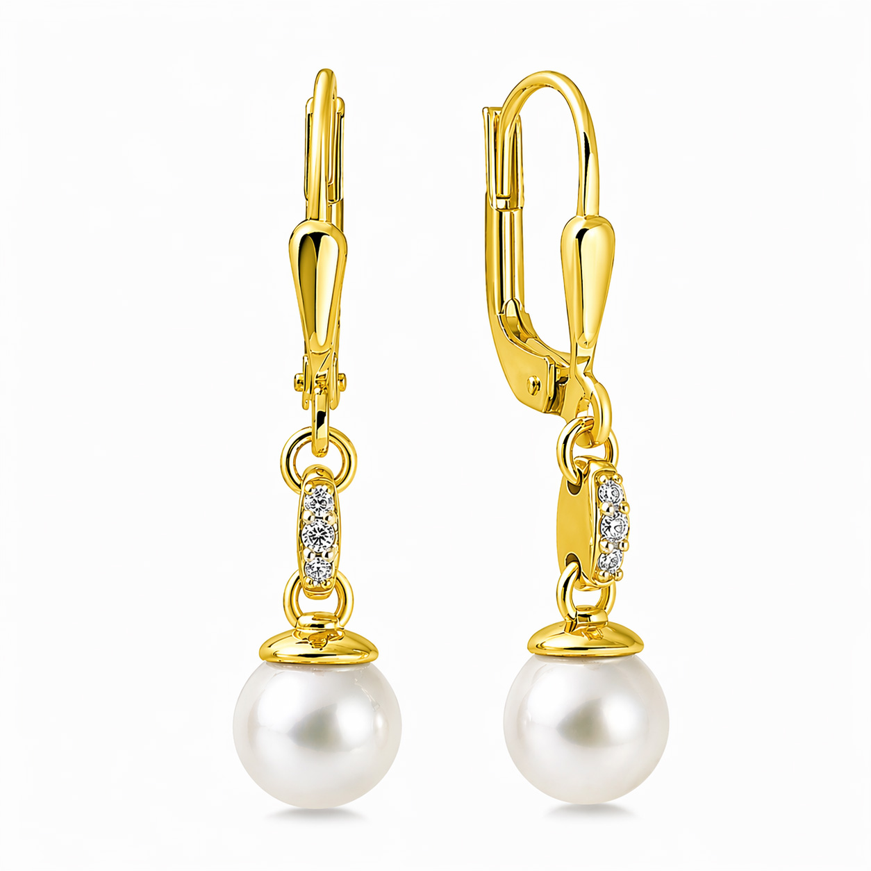 Ohrhänger Süßwasser-Zuchtperle und 6 Zirkonia Silber 925/000 vergoldet