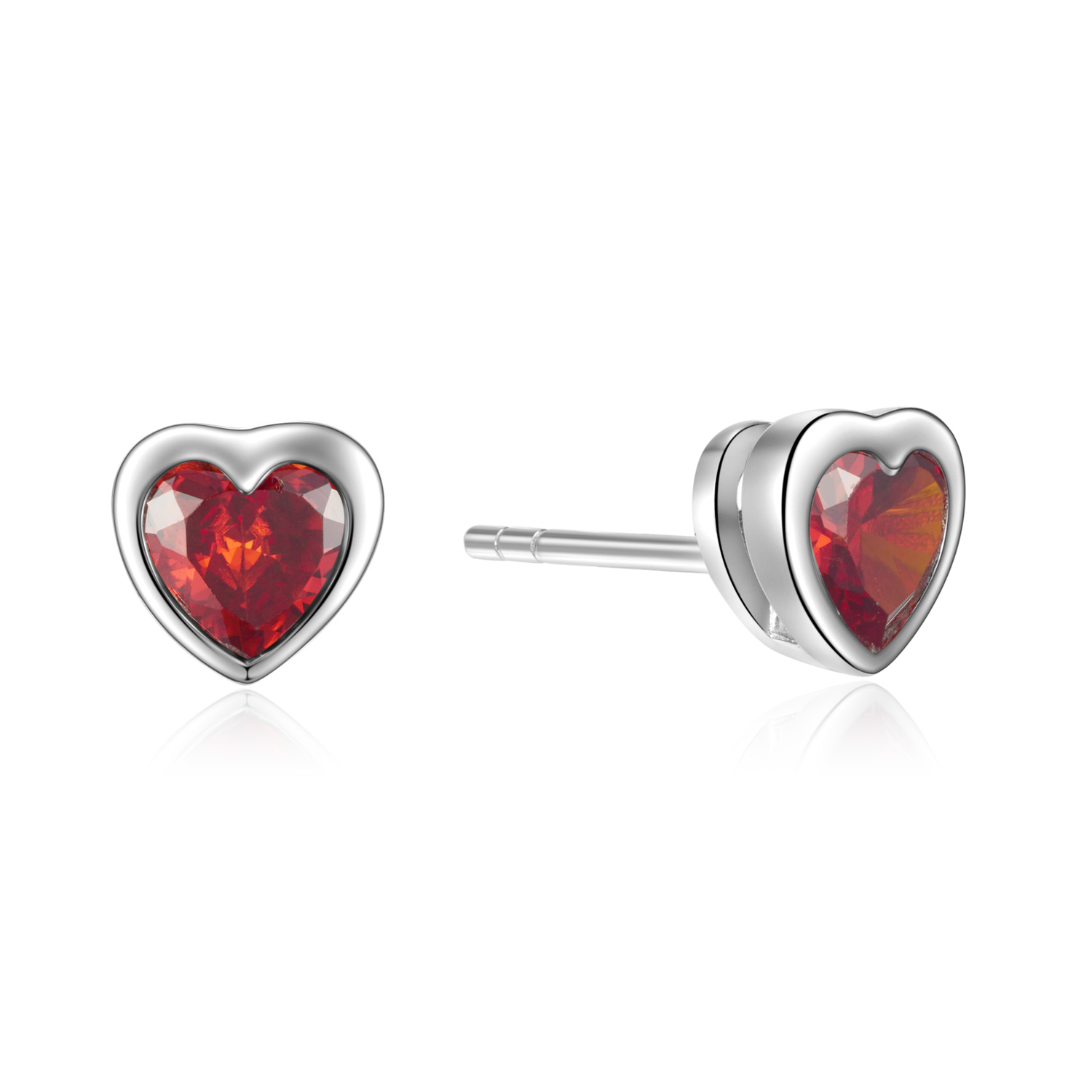 Ohrstecker Herz mit Zirkonia rubinrot